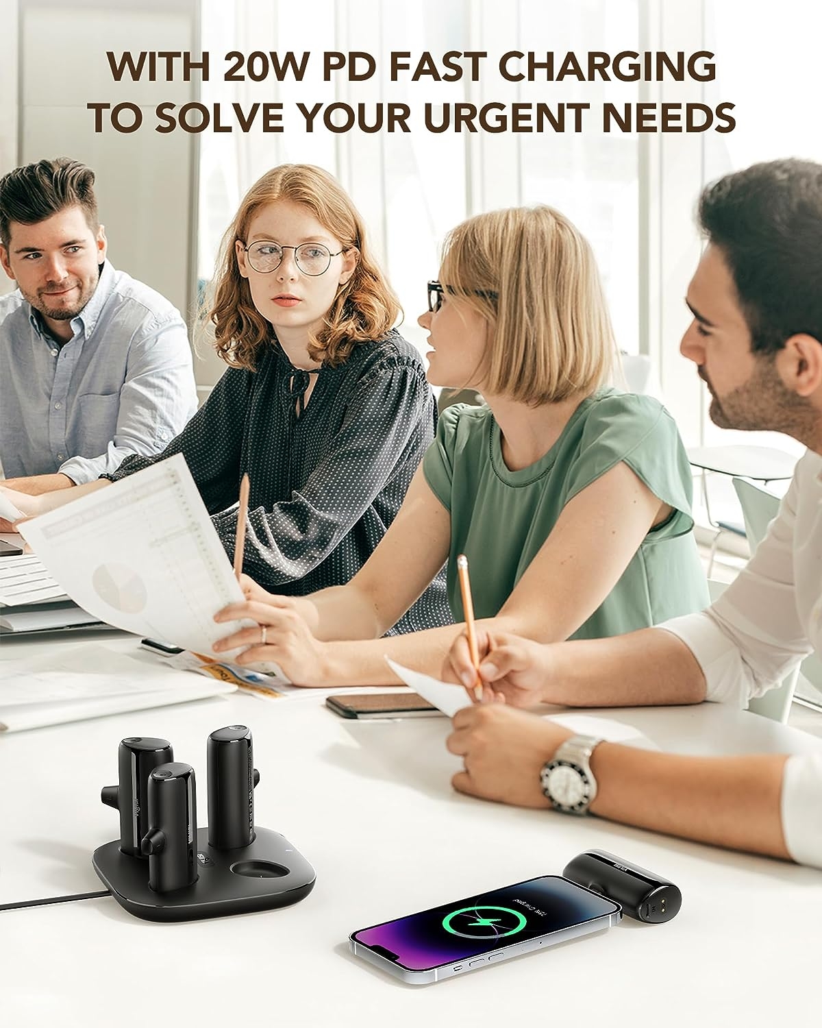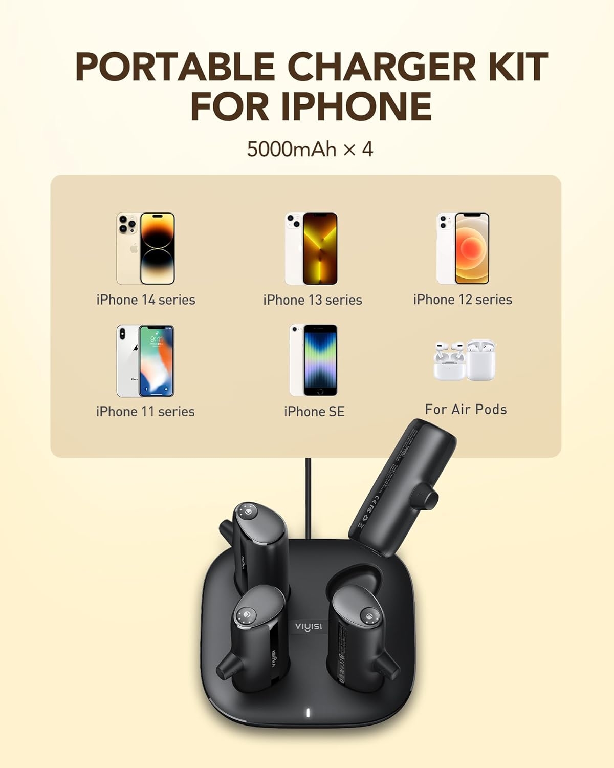 Το G007P της Viyisi αποτελείται από ένα μαγνητικό σταθμό φόρτισης με 4 φορητές μπαταρίες φόρτισης, με ενσωματωμένο βύσμα Lightning και αποτελεί την τέλεια λύση φόρτισης, για όλες τις Apple συσκευές σας που διαθέτουν θύρα Lightning!