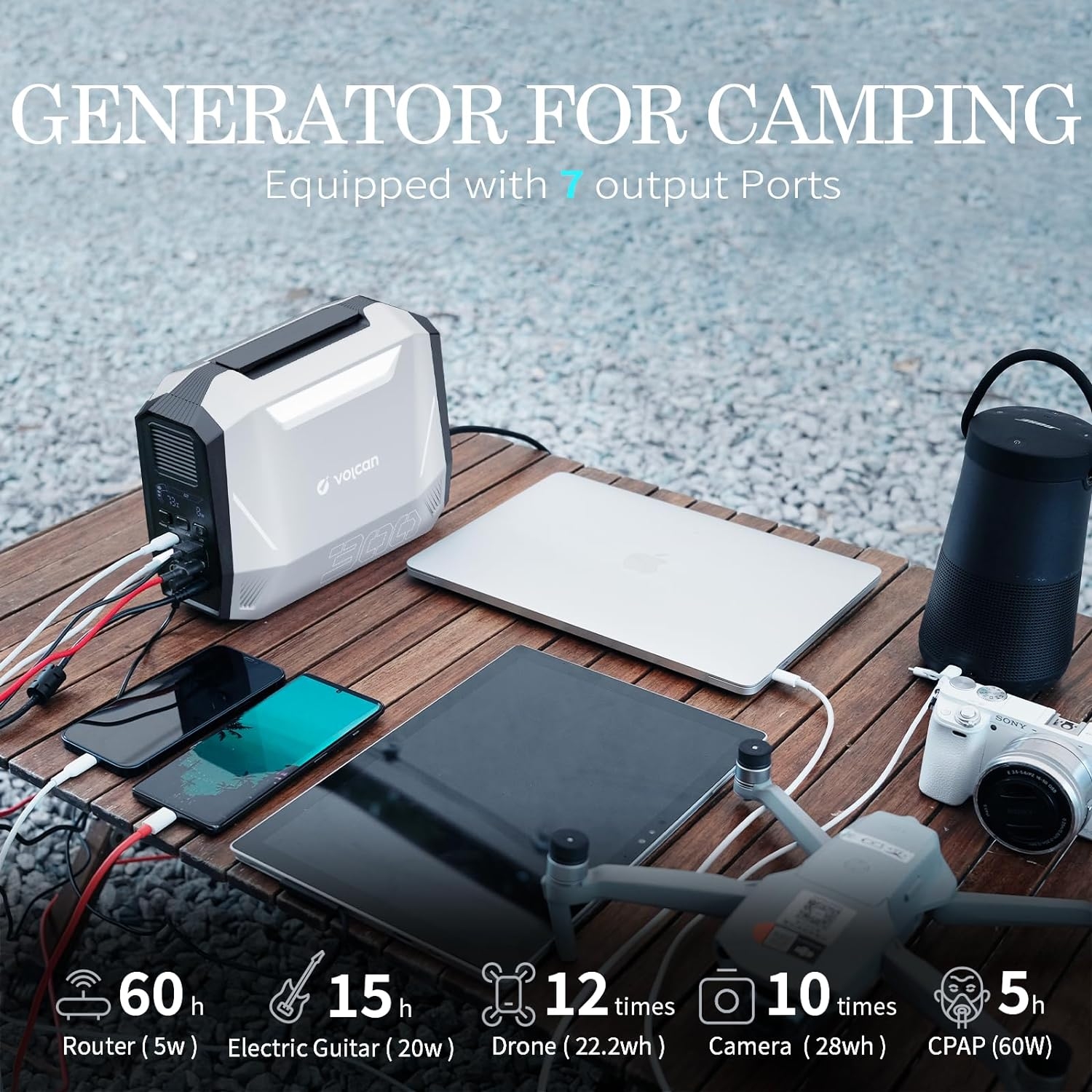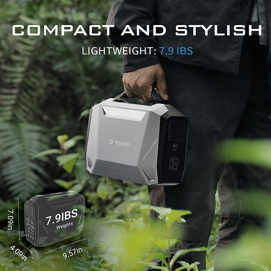 Είναι 20% μικρότερο από άλλα προϊόντα ίδιας χωρητικότητας, ενώ είναι εύκολο και βολικό στη μεταφορά. Είναι απαραίτητη για όποιον αγαπά το κάμπινγκ ή χρειάζεται ένα αξιόπιστο εφεδρικό ρεύμα στο σπίτι. Διαθέτει 1 x AC 300W καθαρού ημιτονοειδούς κύματος, με ισχύ αιχμής 600W, 110V/60HZ, 1 x Type-C, εισόδου και εξόδου, 3A, 60W, 1 x Type-C εξόδου 18W, 2 x USB-A QC 18W, 2 x DC / 10A 120W Max.
