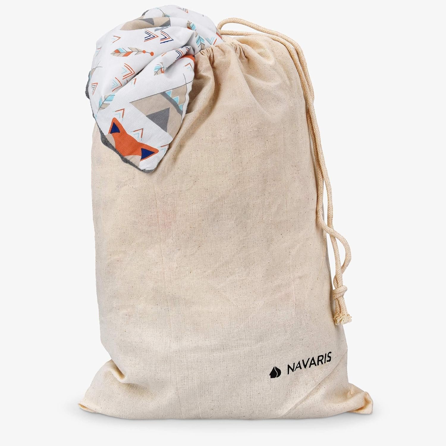Η συσκευασία περιλαμβάνει: 1 x Βρεφική κουβέρτα για παιδικό κάθισμα αυτοκινήτου, 1 x Θήκη μεταφοράς από γιούτα.