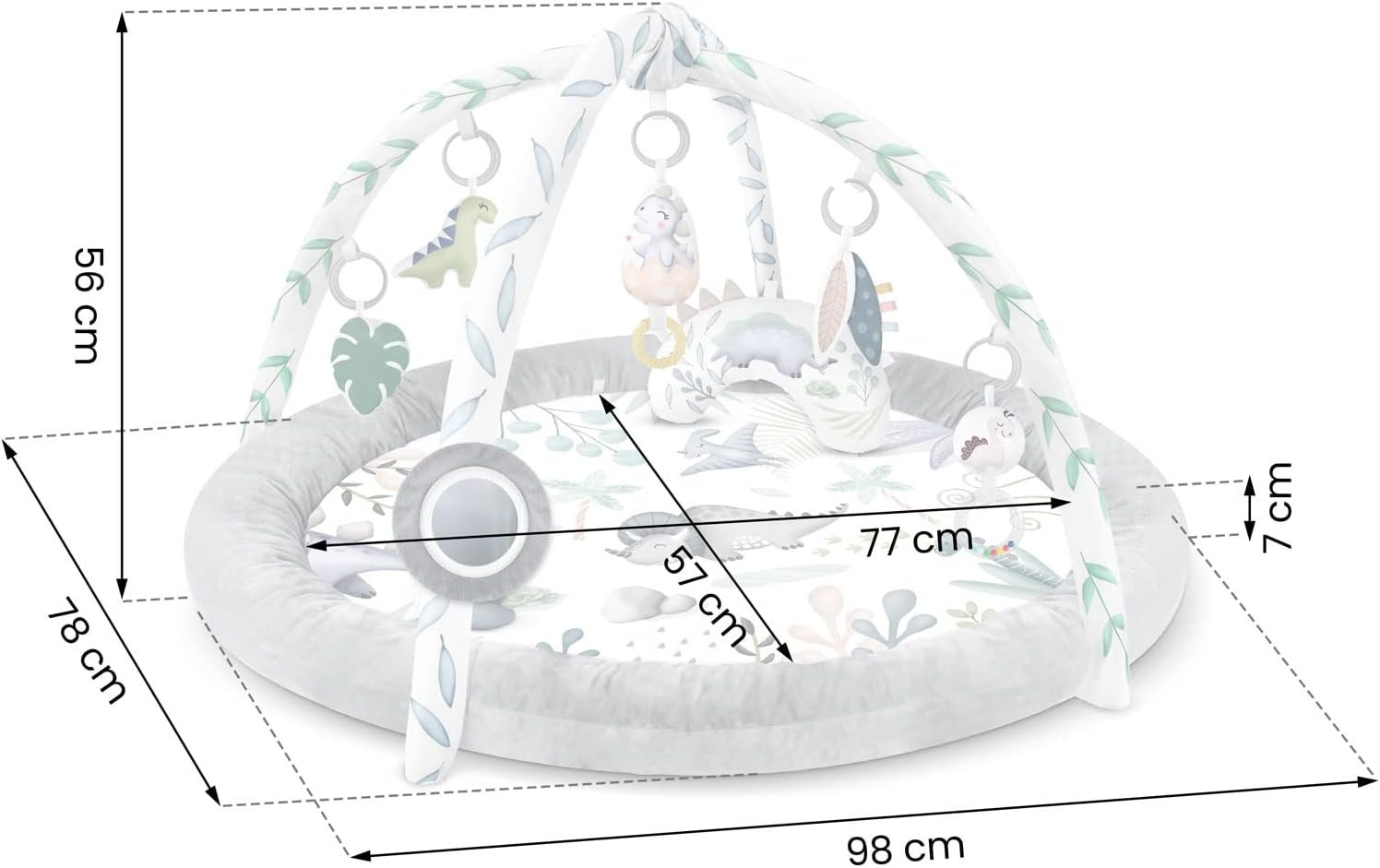 Το βρεφικό χαλάκι δραστηριοτήτων Dino 730200 της Nukido είναι ένα εντυπωσιακό γυμναστήριο για μωρά, με διαστάσεις 98 x 78 cm, σχεδιασμένο για να προσφέρει άνεση, ασφάλεια και ατελείωτες στιγμές διασκέδασης στο μωρό σας από τις πρώτες κιόλας μέρες! Είναι ένα εκπαιδευτικό γυμναστήριο 2 σε 1, το οποίο υποστηρίζει κάθε στάδιο της ανάπτυξης του μωρού σας.
