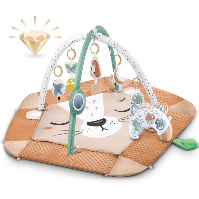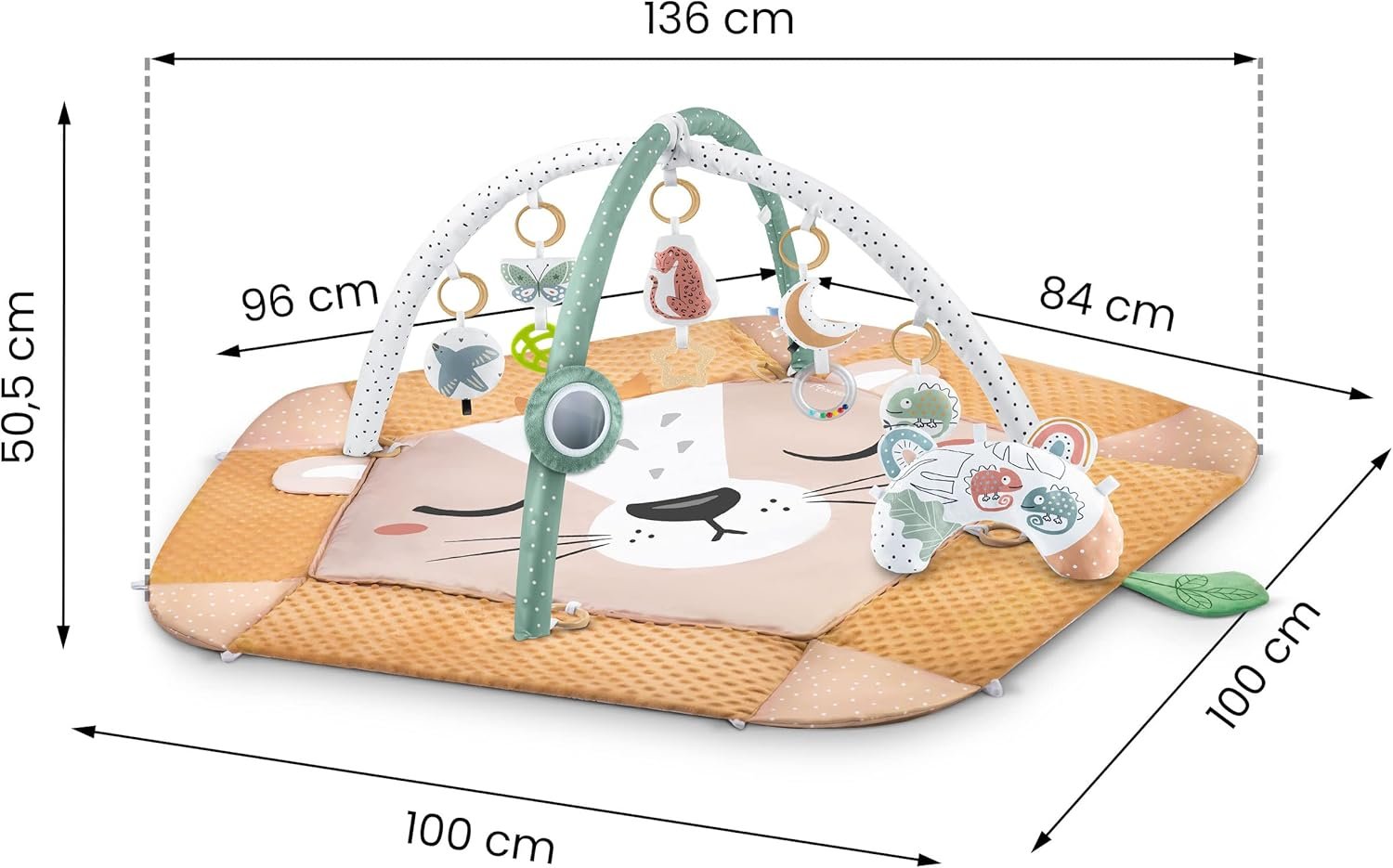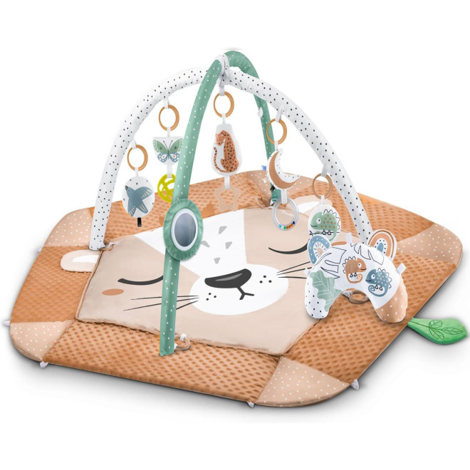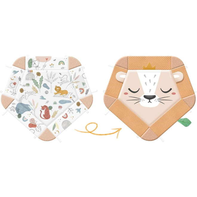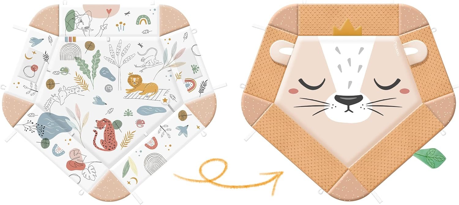 Σχεδιασμένο με φροντίδα και προσοχή στη λεπτομέρεια, για την ασφάλεια και τη διασκέδαση του παιδιού σας. Είναι ένα χαλάκι που θα αγαπήσει το μωρό σας και θα εκτιμήσετε και εσείς, ιδανικό για κάθε σπίτι και παιδικό δωμάτιο! Το ειδικά σχεδιασμένο μαξιλάρι διαθέτει σημεία στήριξης για παιχνίδια, ενώ τα αυτιά λιονταριού με τον ήχο του θροΐσματος προσφέρουν επιπλέον ερεθίσματα.