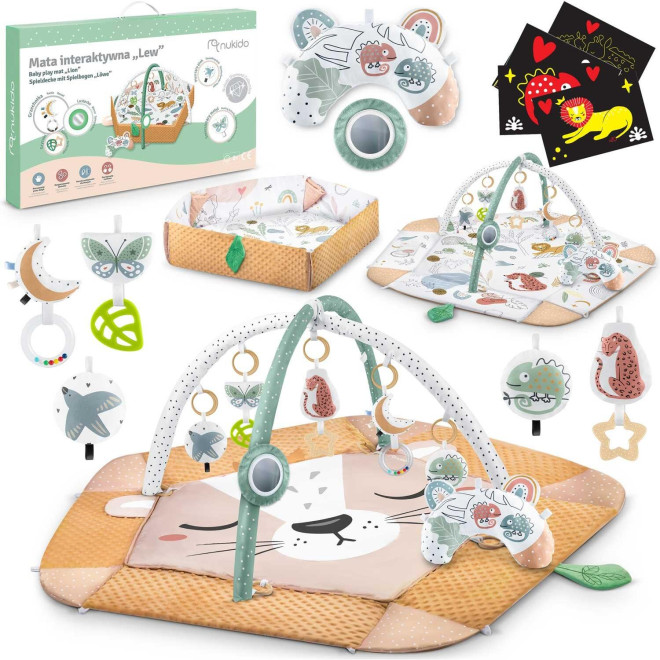 Η συσκευασία περιλαμβάνει: 1 x Χαλάκι Nukido Lion 730101, 5 x Τοίχους, 2 x Καμάρες, 7 x Πολυλειτουργικά παιχνίδια, 1 x Μαξιλάρι, 4 x Εικόνες.