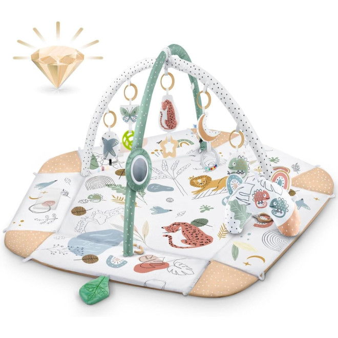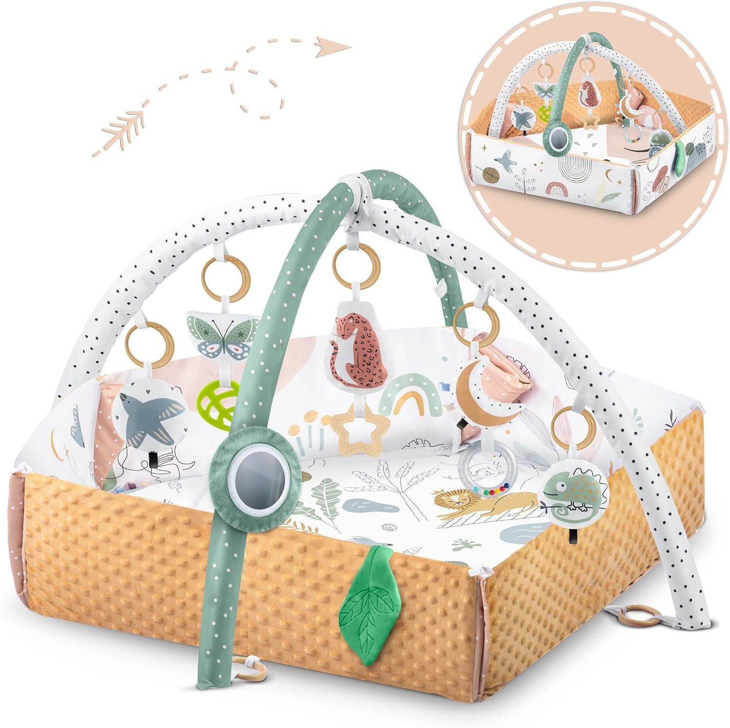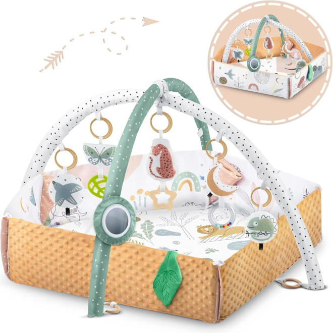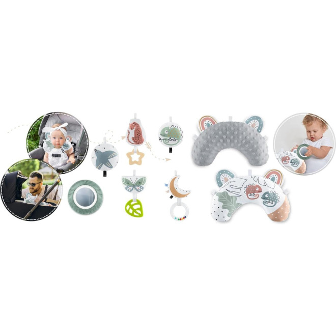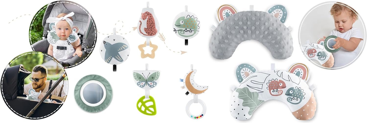 Με 7 πολυλειτουργικά, πρωτότυπα παιχνίδια και ένα μαξιλαράκι στήριξης για την κοιλιά από ύφασμα minky, το μωρό σας έχει πολλές δυνατότητες για παιχνίδι και εκμάθηση. Από πρωτότυπα παιχνίδια μέχρι καθρέφτες από άθραυστο υλικό, κάθε αντικείμενο είναι προσεκτικά σχεδιασμένο με γνώμονα τις ανάγκες του παιδιού και βασισμένο στις πιο πρόσφατες επιστημονικές έρευνες για την ανάπτυξή του.
