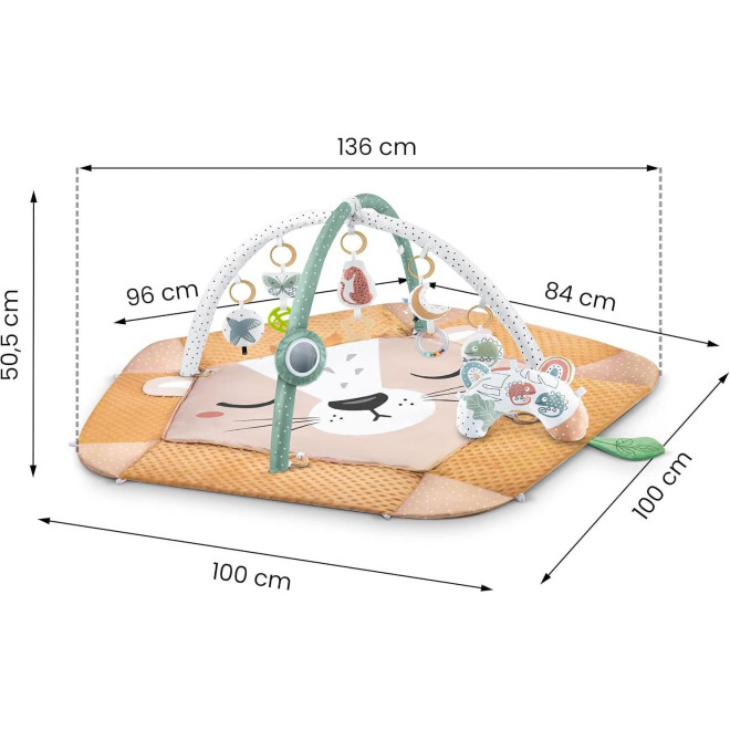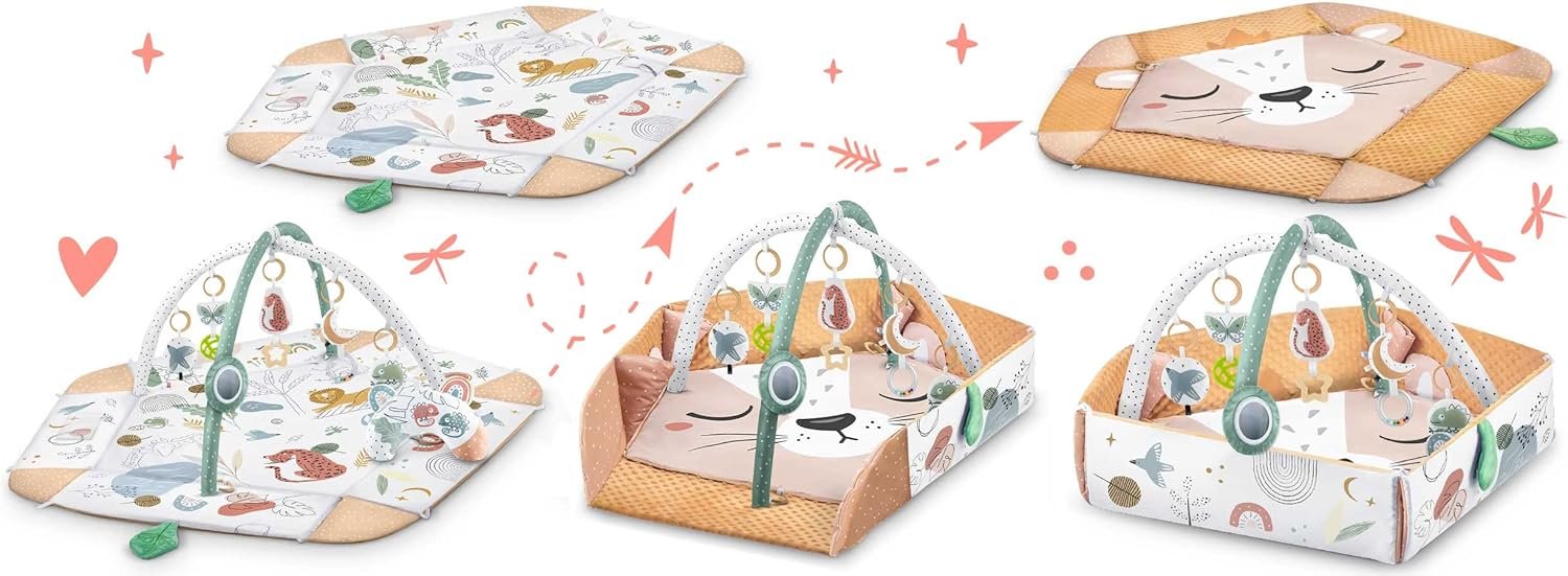 Επιπλέον, μπορείτε να δημιουργήστε έναν πλήρως προσαρμοσμένο χώρο παιχνιδιού, χάρη στους 4 τρόπους τοποθέτησής του. Το χαλάκι είναι εξαιρετικά άνετο και ασφαλές, με εύκολο δίπλωμα, ενώ διαθέτει κλείσιμο με velcro, για εύκολη μετατροπή του χαλιού σε μία "φωλίτσα". Με τις αφαιρούμενες καμάρες και τα παιχνίδια, μπορείτε να προσαρμόστε το χαλάκι στην ηλικία και τα ενδιαφέροντα του παιδιού!