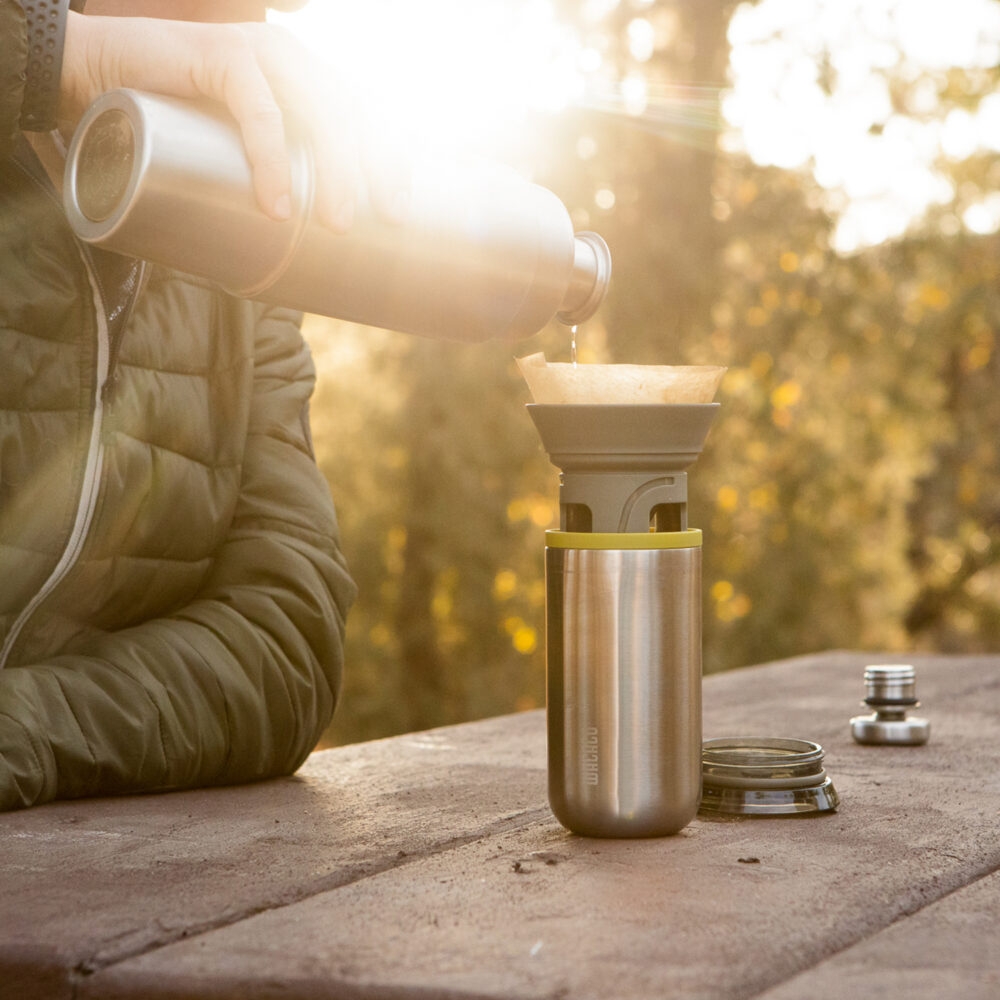 Αφαιρώντας τον αποσπώμενο κώνο μπορείτε να πίνετε τον καφέ ή το ρόφημά σας στην κούπα θερμό, η οποία είναι κατασκευασμένη από ανοξείδωτο ατσάλι διπλού τοιχώματος και διατηρεί για 2-3 ώρες το ρόφημά σας στη σωστή θερμοκρασία. Αποτελεί την τέλεια λύση για τους λάτρεις του pour-over καφέ.